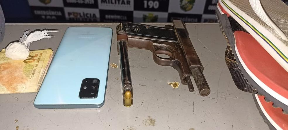 Foram apreendidas com o adolescente uma pistola e uma munição calibre 32, R$ 224 reais em dinheiro e uma porção de pasta base de cocaína.