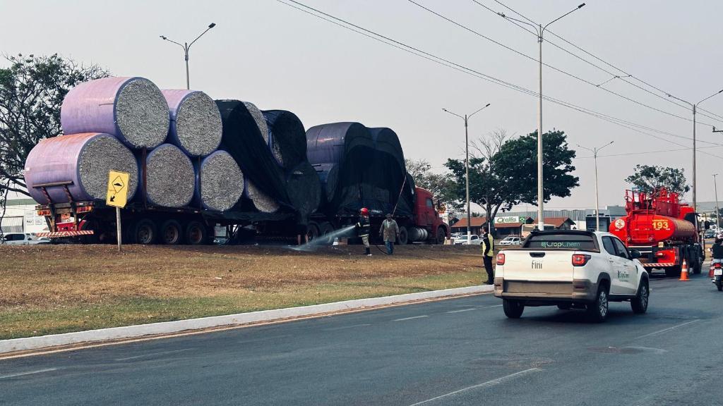Ao receber a chamada de emergência via 193, a equipe da 11ª Companhia Independente Bombeiro Militar (11ª CIBM) se deslocou para o local e ao chegar constatou que o fogo havia atingido parte dos rolos de algodão que estavam no reboque do veículo.