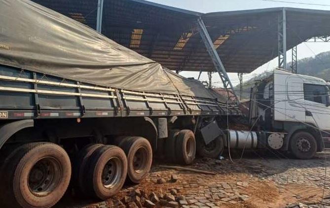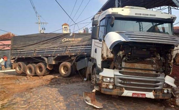 Uma carreta desgovernada atingiu o muro da quadra da Escola Estadual Poxoréu, no centro do município, na manhã desta sexta-feira (11).