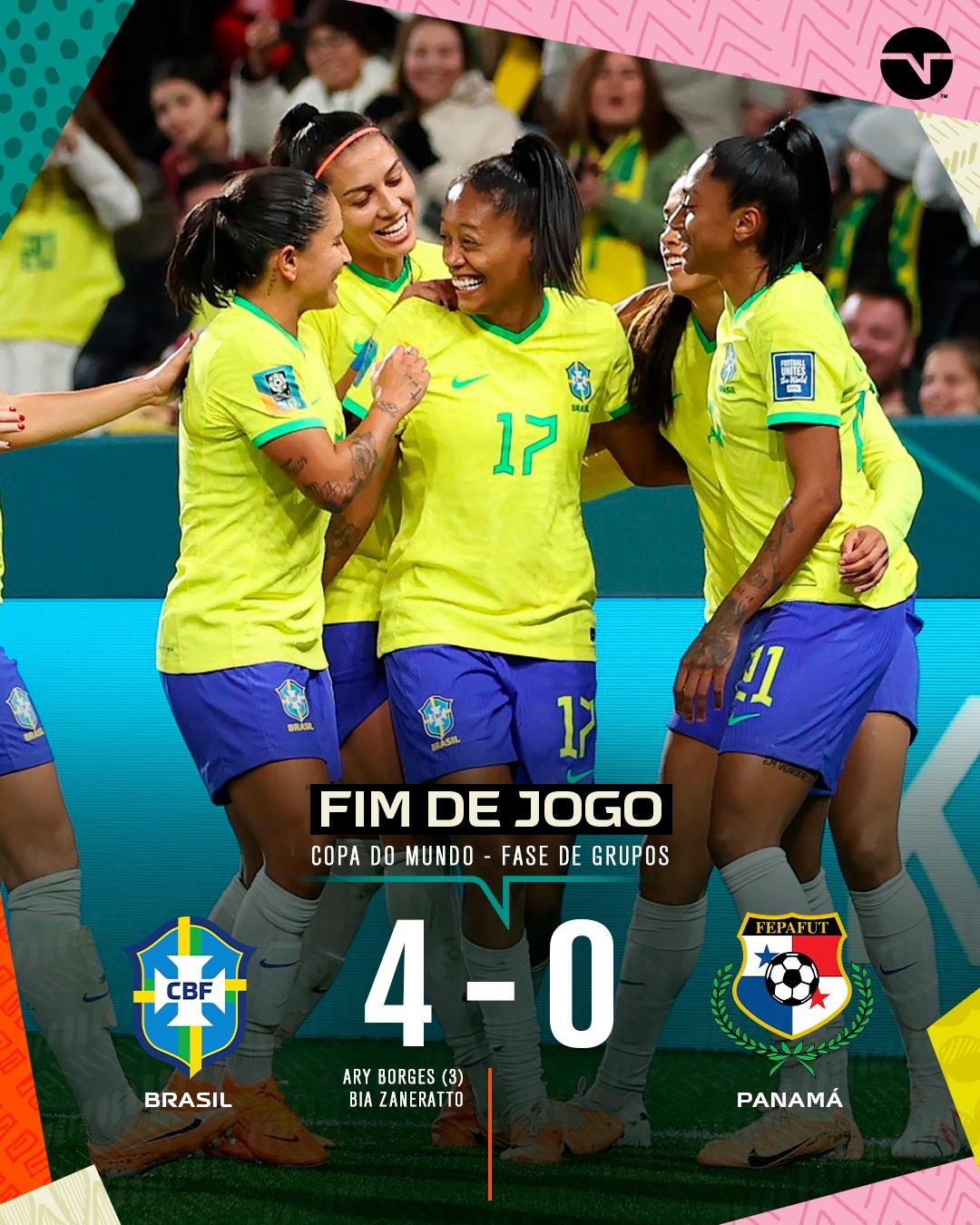 O Brasil venceu o Panamá por 4 a 0, na manhã desta segunda-feira, na primeira rodada do Grupo F da Copa do Mundo Feminina. O grande destaque da partida foi a meio-campista Ary Borges, que marcou três gols e deu assistência para Bia Zaneratto completar a goleada. O Brasil construiu a vitória de forma tranquila, com 73% da posse de bola e 32 finalizações, sendo 10 no alvo.