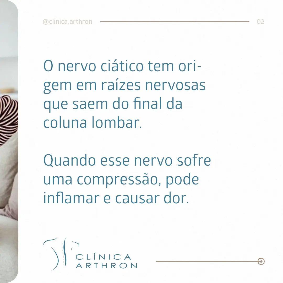 O nervo ciático tem origem em raízes nervosas que saem do final da coluna lombar. Quando esse nervo sofre uma compressão, pode inflamar e causar dor.