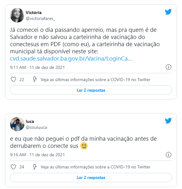 Nas redes sociais, usuários relatam não ter acesso à plataforma nem para visualizar o comprovante de vacinação contra a Covid-19, nem para acessar dados pessoais. Em muitos casos, aparece a mensagem: "Ocorreu um erro ao acessar os dados. Tente novamente mais tarde".