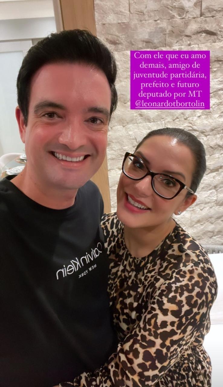 A deputada Janaina Riva (MDB) é uma das lideranças do partido que apostam no nome de Bortolin como uma opção para reforçar a bancada emedebista na Assembleia Legislativa. Em seu Instagram, ela publicou uma foto ao lado do prefeito. “Com ele que eu amo demais, amigo de juventude partidária, prefeito e futuro deputado por MT”, escreveu na legenda.