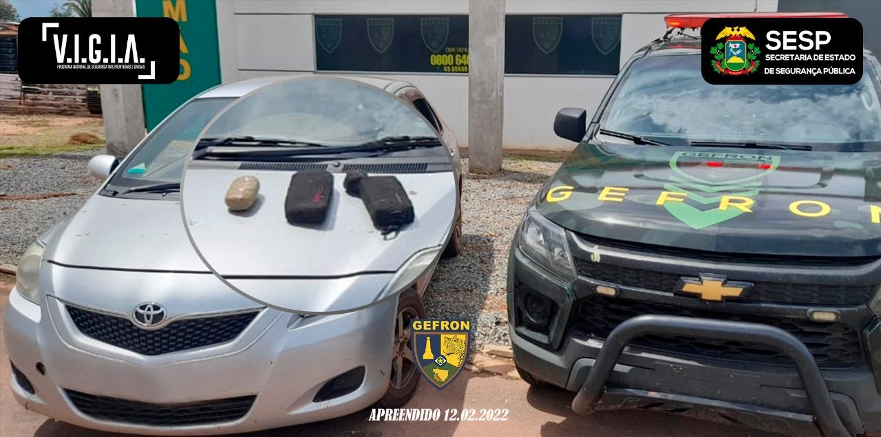 A outra ocorrência foi durante patrulhamento de rotina na MT-473, no município de Pontes e Lacerda (493 km de Cuiabá), quando um veículo Corsa Wind de cor vermelha - que trafegava no sentido contrário ao da equipe do Gefron - ao perceber a viatura policial freou bruscamente na pista. Os policiais, então, por meio de sinais sonoros e luminosos, realizaram a abordagem do veículo.