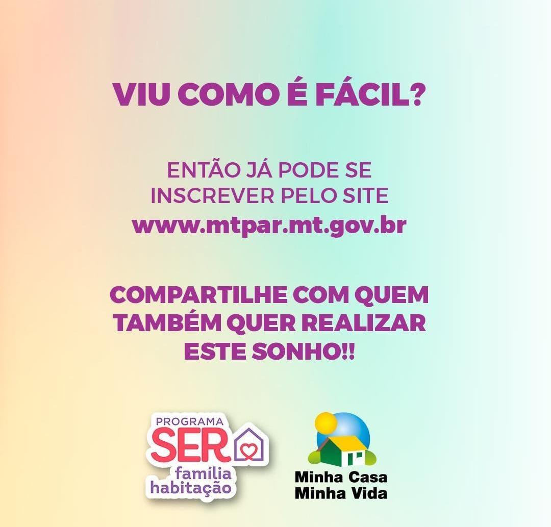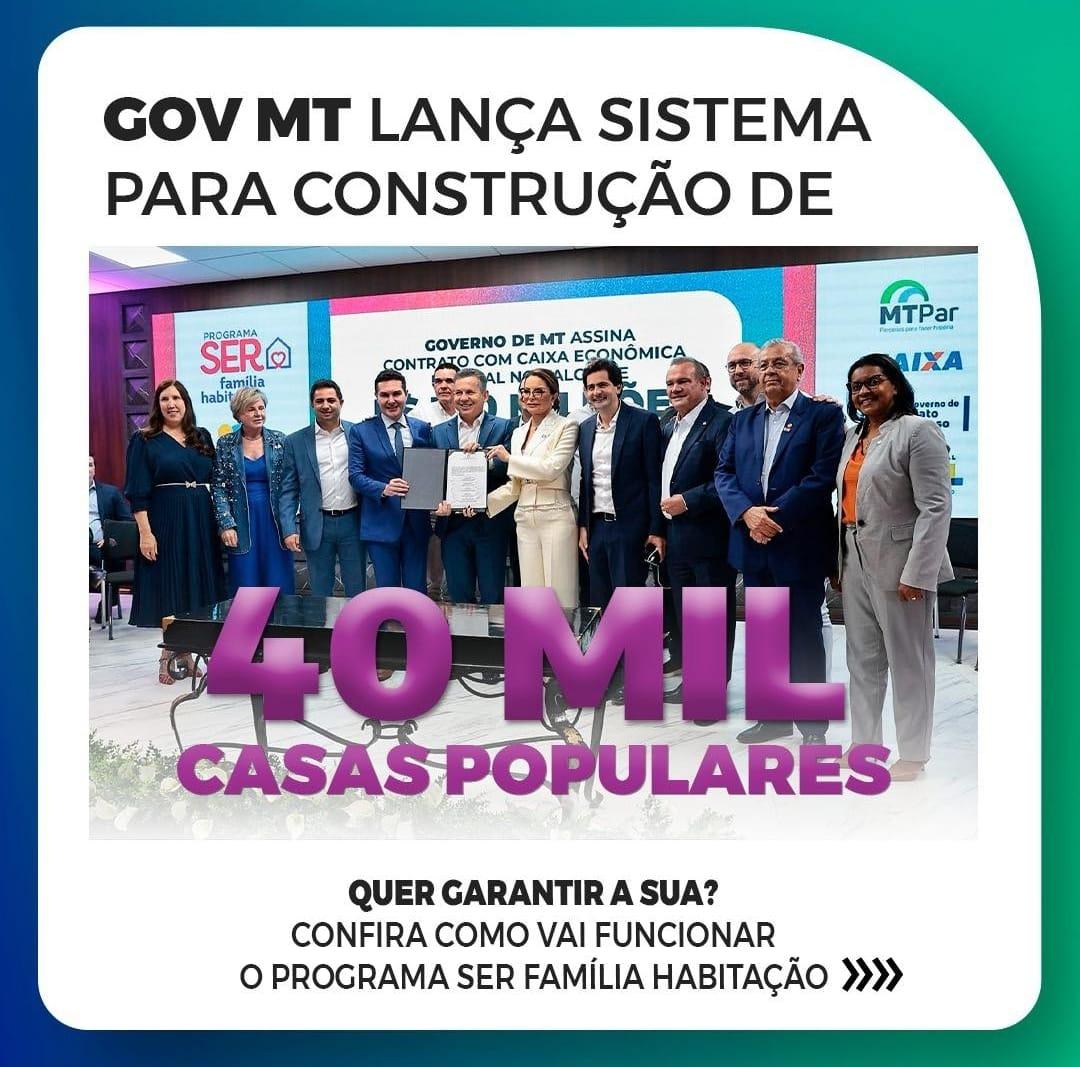 “Hoje lançamos um dos mais importantes e relevantes programas sociais do Governo do Estado de Mato Grosso, em parceria com o Governo Federal. Os programas SER Família Habitação e Minha Casa Minha Vida se potencializaram para permitir que milhares de famílias possam realizar o sonho da casa própria”, afirmou.