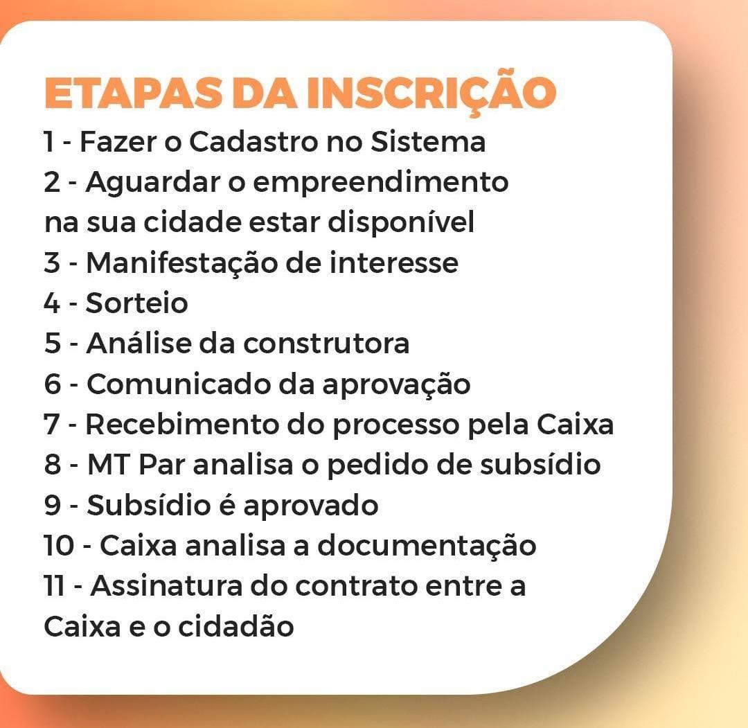 O site, que permitirá o cadastro das famílias interessasdas, já está no ar no link. O cidadão poderá entrar no sistema e fazer sua inscrição. As unidades serão liberadas de acordo com a demanda.