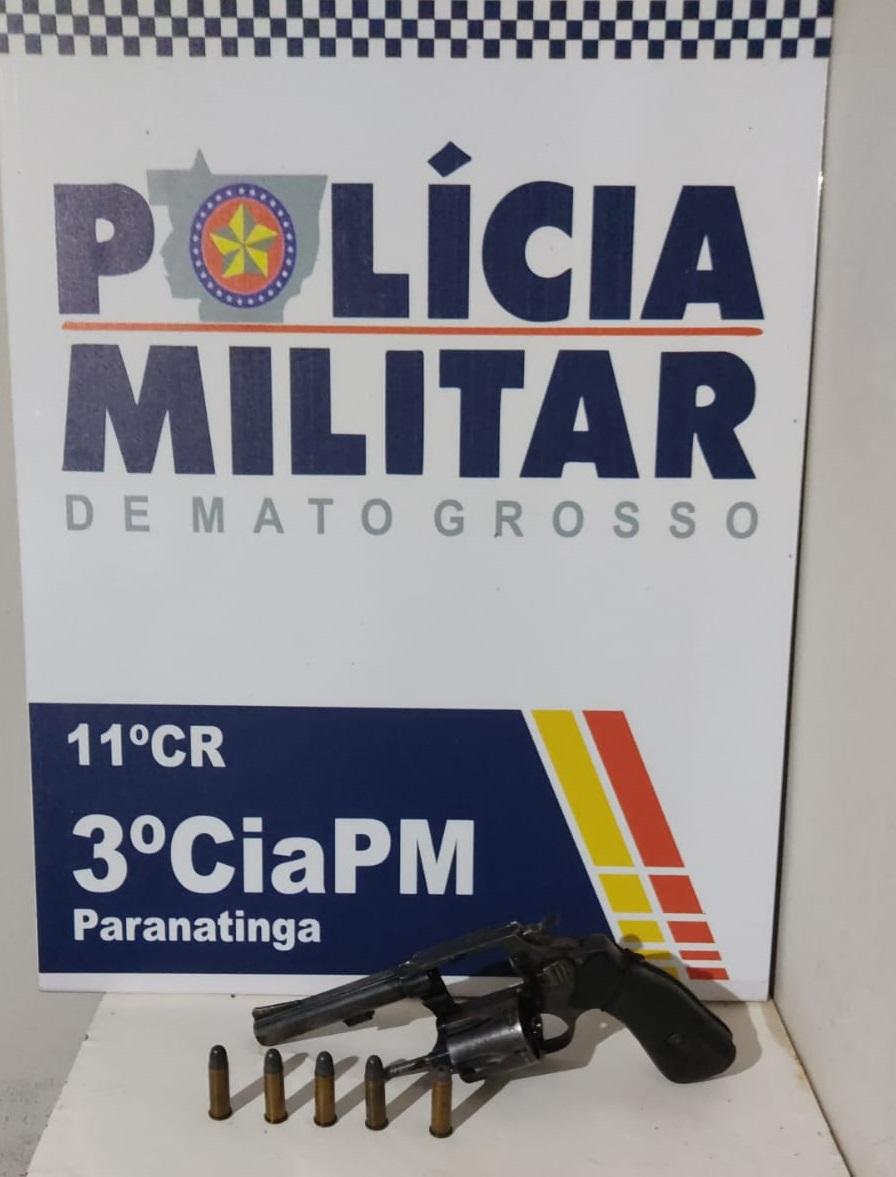 Em revistas a PM localizou uma arma de fogo, tipo revolver .38 com 5 munições intactas, na parte superior do armário da cozinha, local indicado pelo homem de 44 anos, nada mais foi localizado.