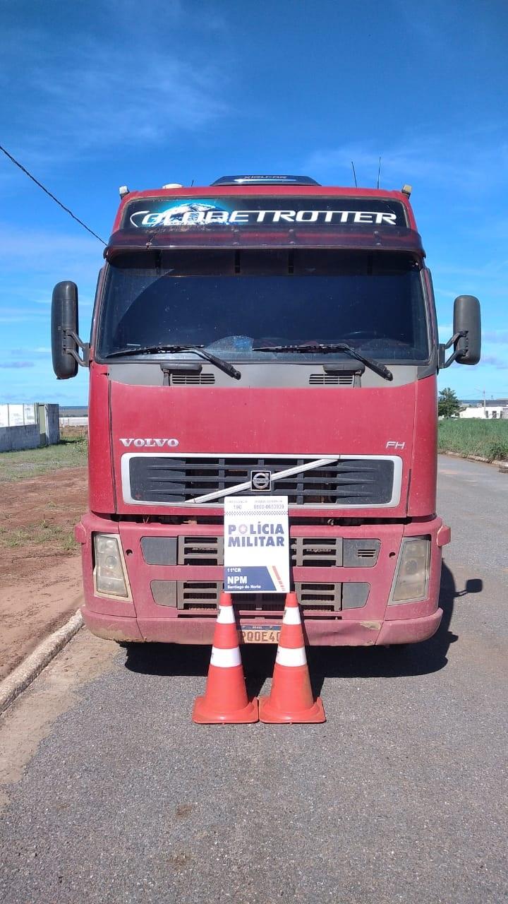 Em diligência a Policia Militar conseguiu localizar o referido caminhão, parado em frente a sede da fazenda Pacuneiro, localizado na estrada que liga referido distrito sentido à Santiago do Norte.