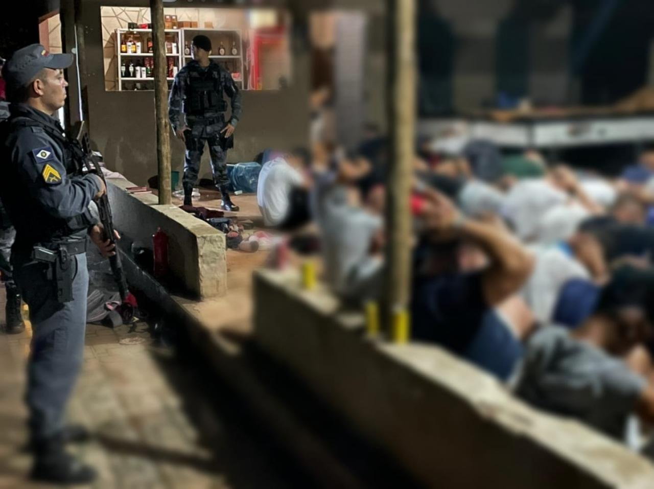 Policiais militares encerraram uma festa irregular com mais de 100 pessoas, que seria patrocinada por integrantes de uma organização criminosa, na noite de sábado (09.04), na zona rural de Campo Verde.