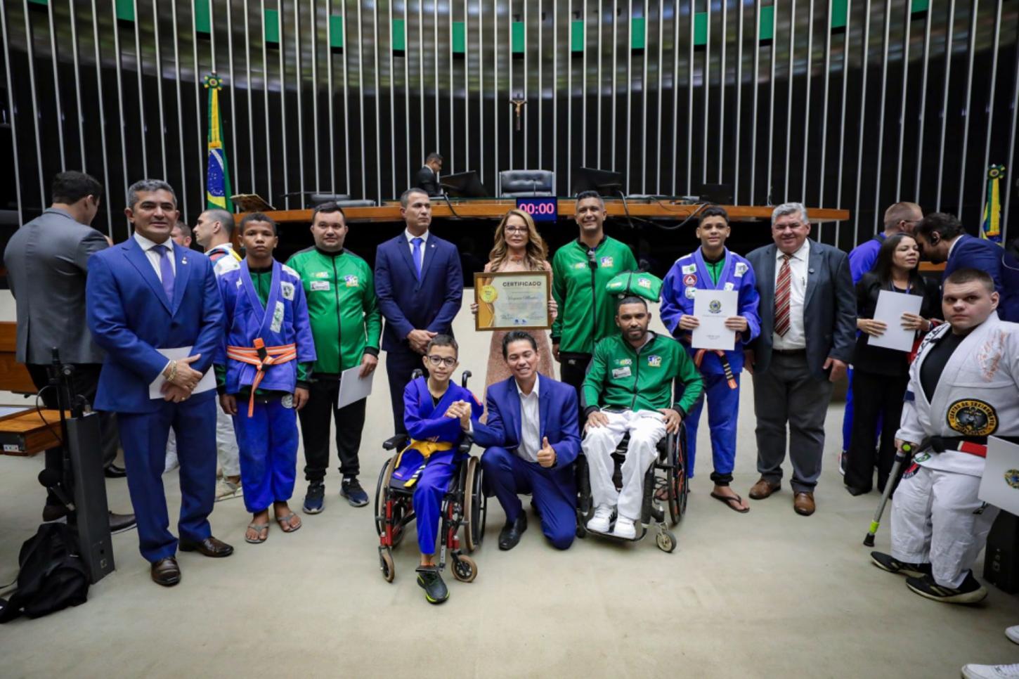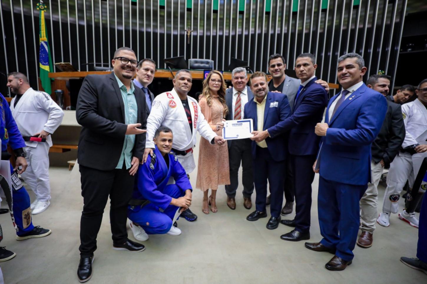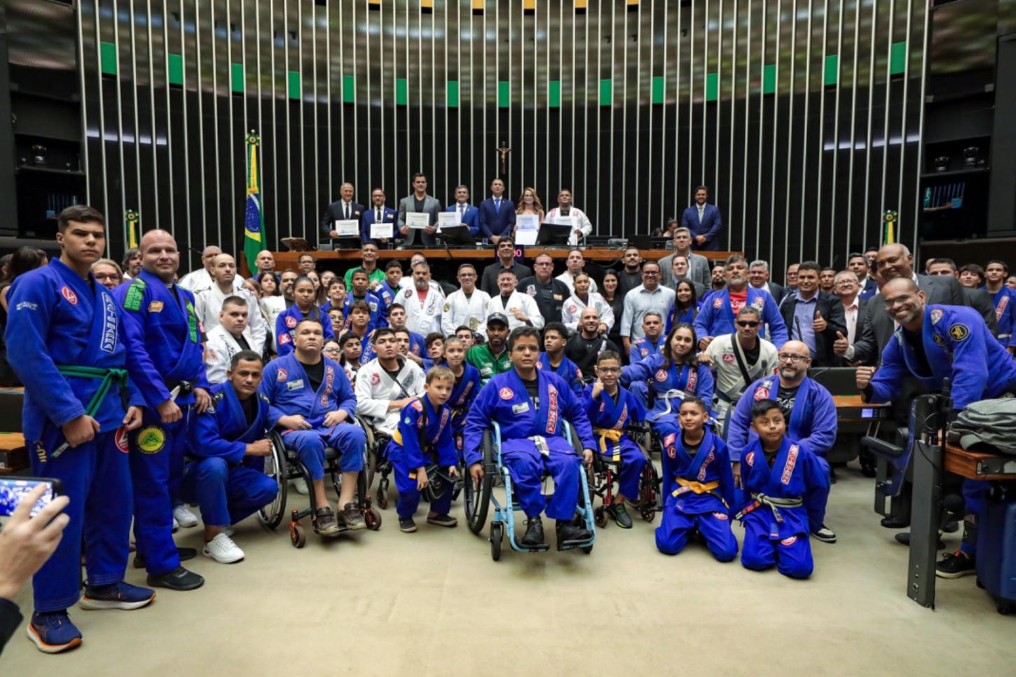 Na sessão solene realizada nesta terça-feira (25/06) na Câmara Federal em Brasília, a Federação Brasileira de Jiu-jitsu Paradesportivo (FBJJP), que atende projetos em Barra do Garças e Canarana, consagrou Virginia Mendes como Madrinha Nacional. Ela já havia recebido o título de Madrinha do esporte em Mato Grosso e agora terá a missão de mobilizar primeiras-damas de outros Estados. A solenidade foi requerida pelo deputado federal por MT, Cel. Assis, com o objetivo de atrair a atenção da população para a modalidade esportiva inclusiva.