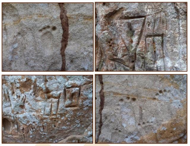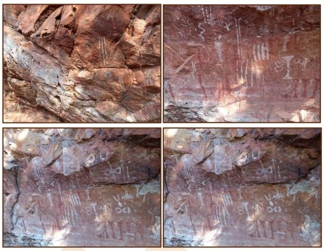 “Foram Identificadas pinturas em painel rochoso de colorações vermelha, branca e preta em estado de conservação regular com intempéries que resultaram na descamação do suporte rochoso, danificando partes do painel pintado, além de manchas escuras de umidade”, diz trecho do relatório. O documento foi entregue ao IPHAN, mas o órgão indicou uma série de complementações que deveriam ser feitas e que ainda estão sob discussão.