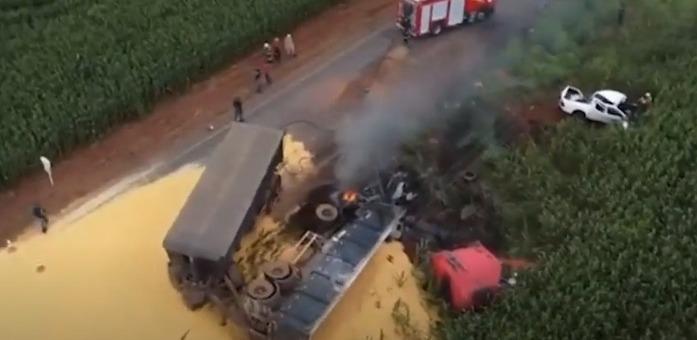Segundo o tenente-coronel do Corpo de Bombeiros, Fernando Duarte Santana, a carreta pegou fogo após a batida, mas o motorista saiu ileso. As quatro servidoras estavam na caminhonete.