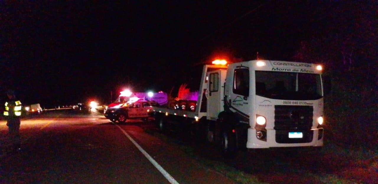 Com o impacto, os três envolvidos morreram no local. Uma equipe médica da concessionária Morro da Mesa, que administra a rodovia estadual, foi acionada para prestar atendimento, mas as vítimas já estavam mortas.