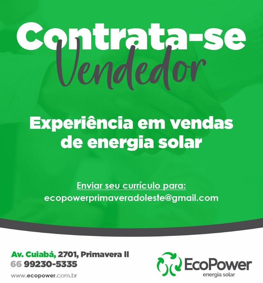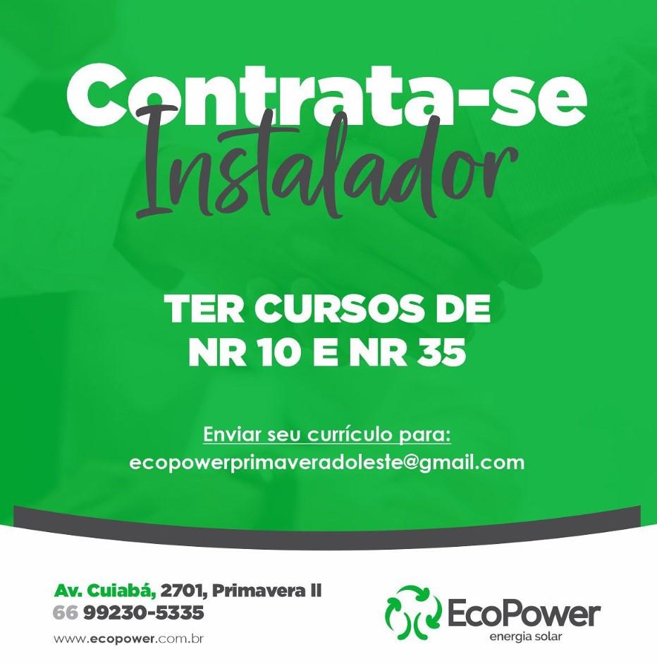 EcoPower Primavera do Leste contrata Instalador e Vendedor, interessou nas vagas? Indique através do link do JL Notícias.